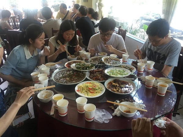 菜陸續(xù)上桌,大家也真的餓了,都開(kāi)始了不顧形象的海吃